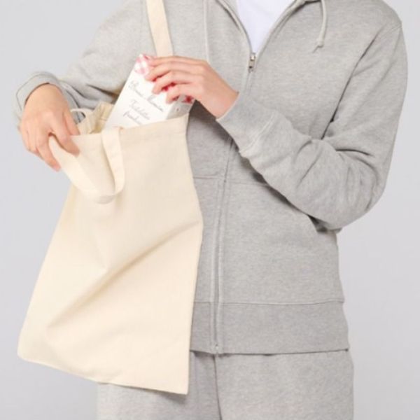 書類入れに便利な、マチなし、フラットタイプのトートバッグ。