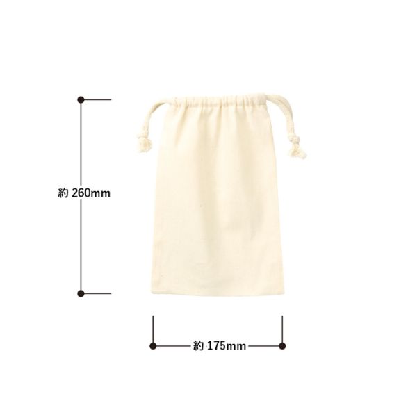 A5サイズを、余裕をもって収納できるコットン製巾着。