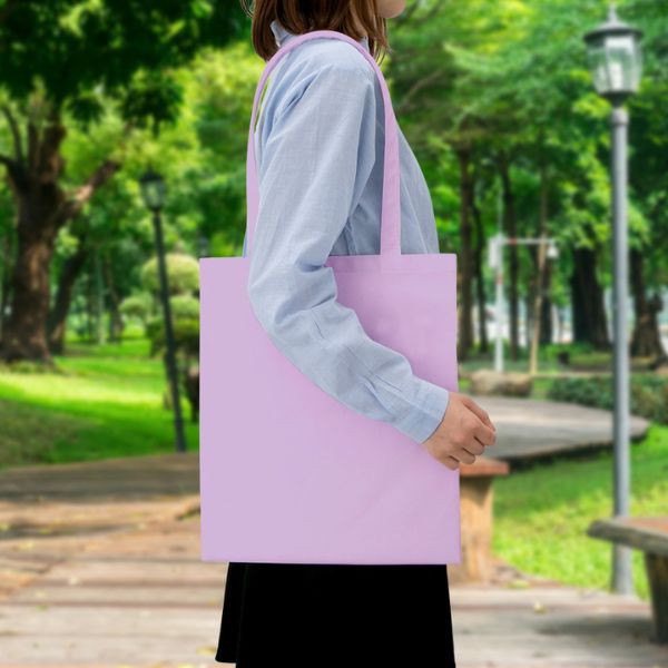 A4をゆったり収納できるサイズの、フラット不織布トートバッグ。