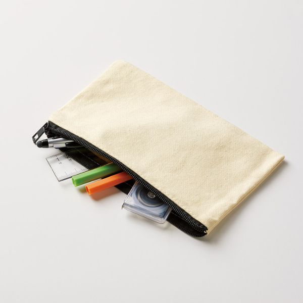 厚みもあり、しっかりとした生地のフラットタイプポーチ。