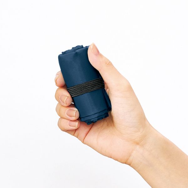 たたんで縛れば、カバンの中でも場所を取らない超コンパクトサイズに。