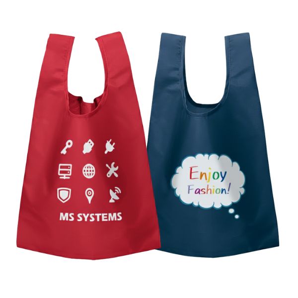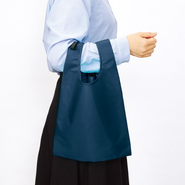 普段のお買い物にエコバッグとして便利なゴム付きのポリエステル製マルシェバッグ。