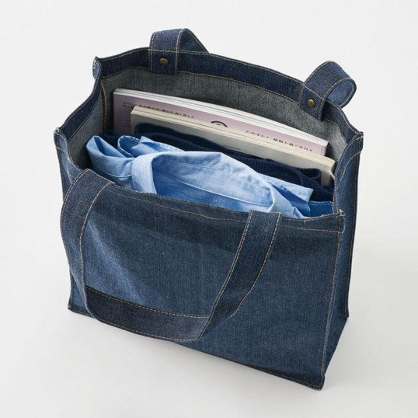 インディゴカラーにベージュのステッチの、おしゃれなデニムタイプ。