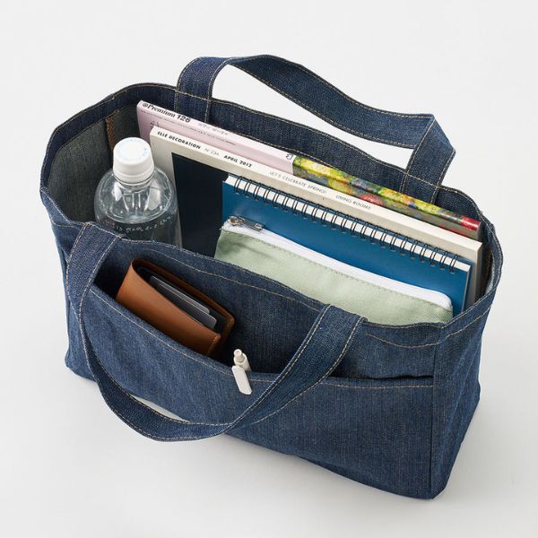 インディゴカラーにベージュのステッチの、おしゃれなデニムタイプ。
