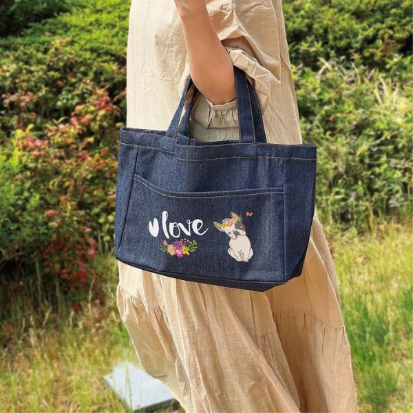 フロントポケット付きの横型トートバッグです。